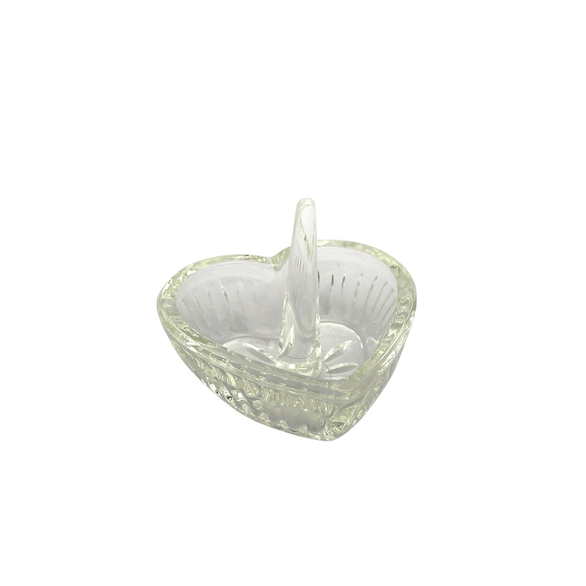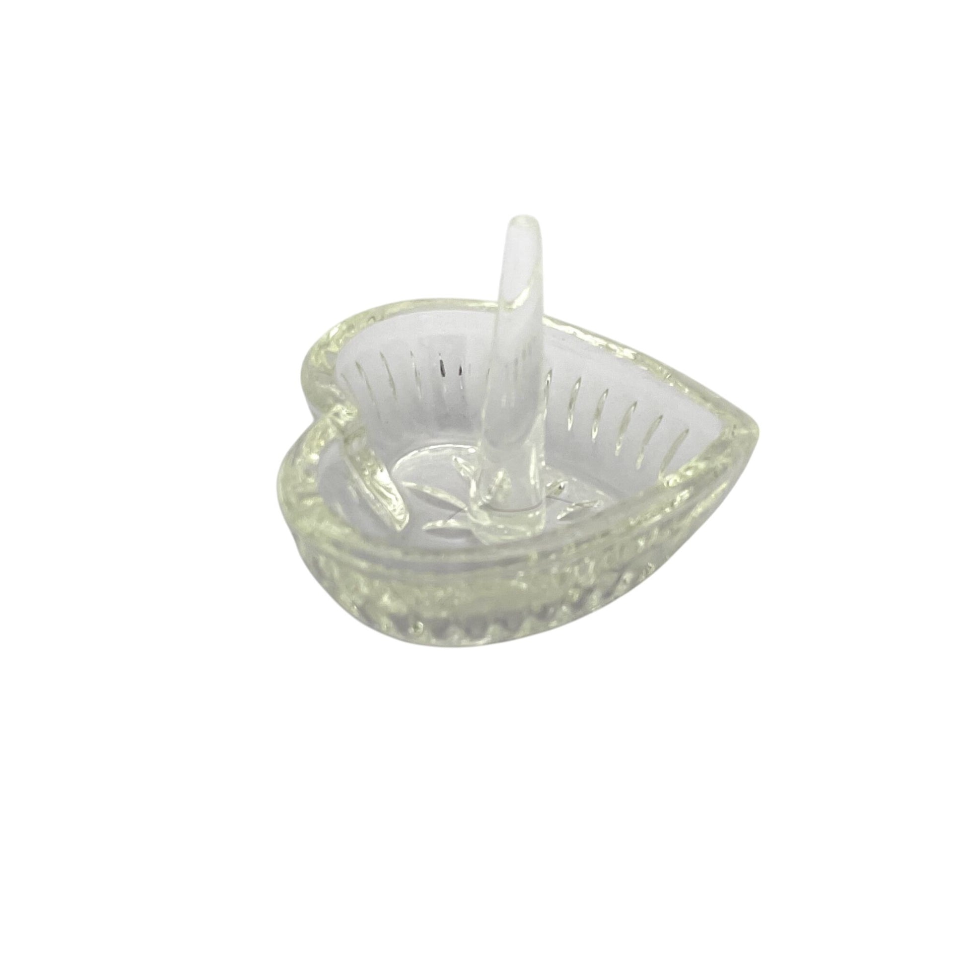Sm Heart-Shaped Clear Glass Ring Holder With Diamond Pattern Design