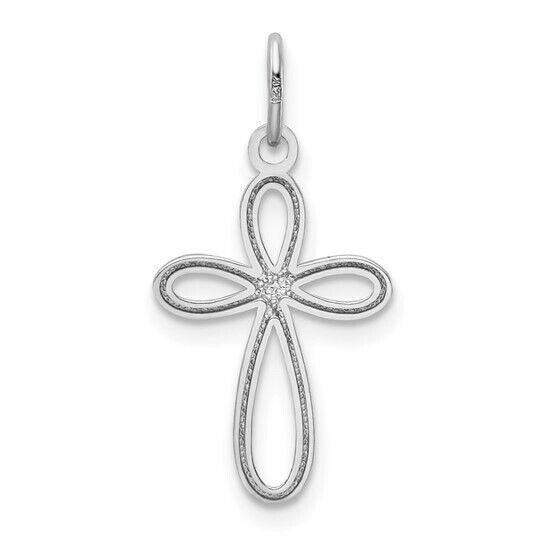 Country of Origin: UNITED STATESMetal: 14k White GoldProduct Type: JewelryJewelry Type: Pendants & CharmsMaterial: Primary: GoldMaterial: Primary - Color: WhiteMaterial: Primary - Purity: 14KLength of Item: 23 mmWidth of Item: 11.5 mmCharm/Element Width: 11.5 mmFeature: SolidManufacturing Process: CastedPlating: Rhodium