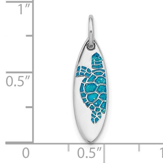 Elevate your style with this sterling silver turtle pendant, featuring vibrant blue enamel accents and rhodium plating for a polished, enduring shine.