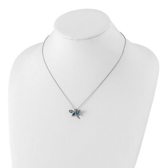 Brilliant Gemstones Sterling Silver with 14K Accent Rhodium-plated Light Blue Topaz and London Blue Topaz and Diamond Dragonfly 18 inch Necklace with 2 inch Extender