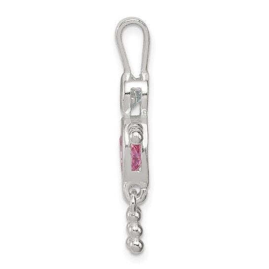 Sterling Silver Rhodium-plated CZ and Birthstone Pink October Glass Boy Pendant