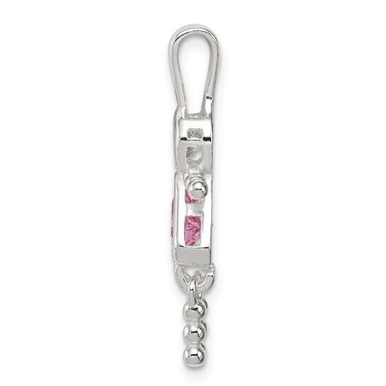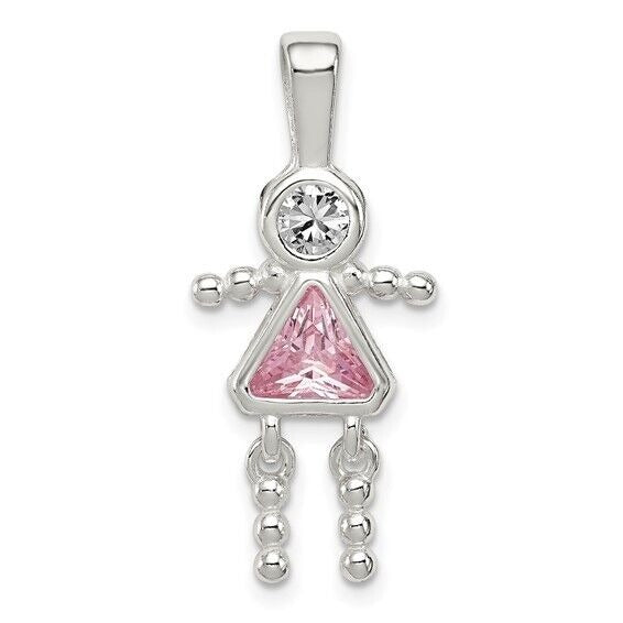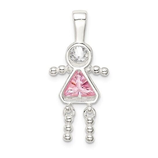 Sterling Silver Rhodium-plated CZ and Birthstone Pink October Glass Girl Pendant