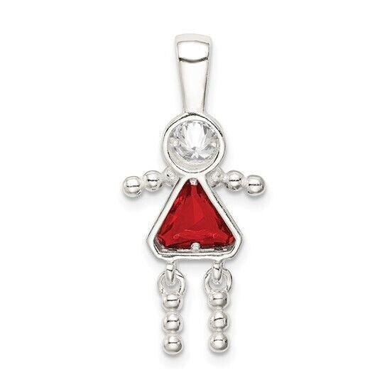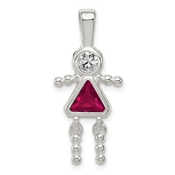 Sterling Silver Rhodium-plated CZ and Birthstone Red July Glass Girl Pendant