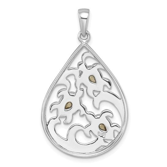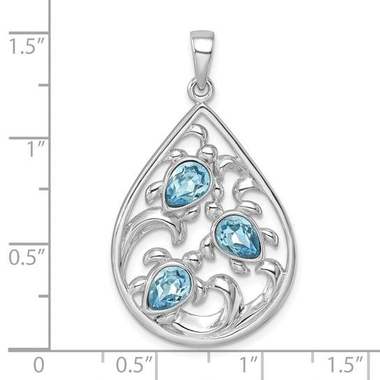 Sterling Silver Rhodium-plated Triple Crystal Turtle Ocean Wave Pendant