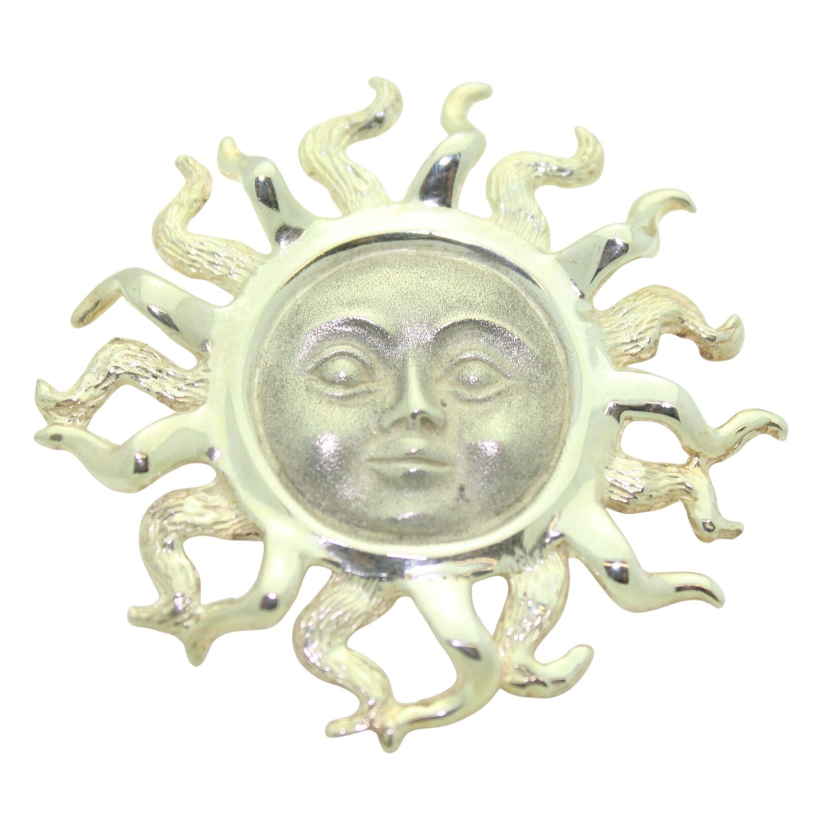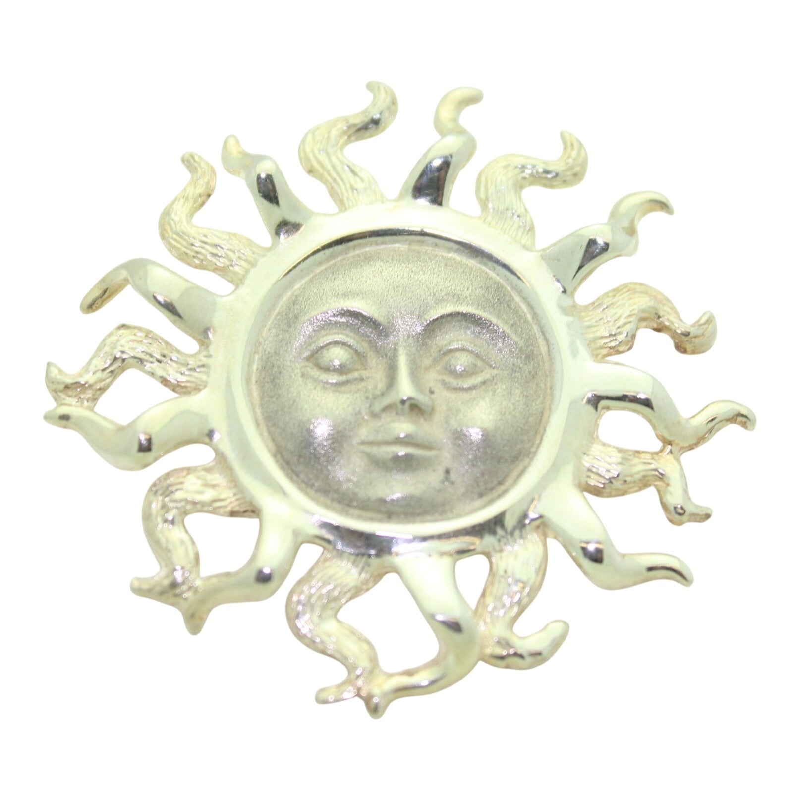 Sterling Silver Sun Face Pendant/Pin 2 1/8" Diameter Solid .925 Silver 22.8g