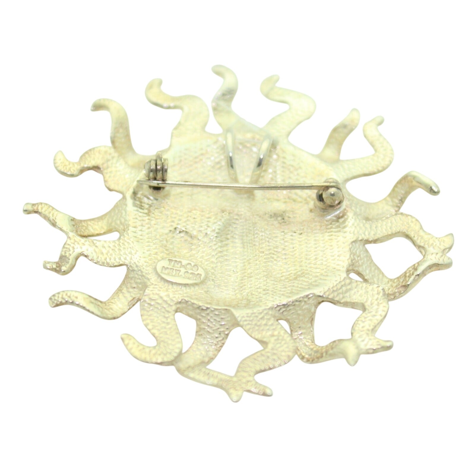 This sterling silver sun-inspired pendant/pin offers a versatile accessory option. Its crafted .925 silver design features intricate detailing, suitable for professional and formal wear.