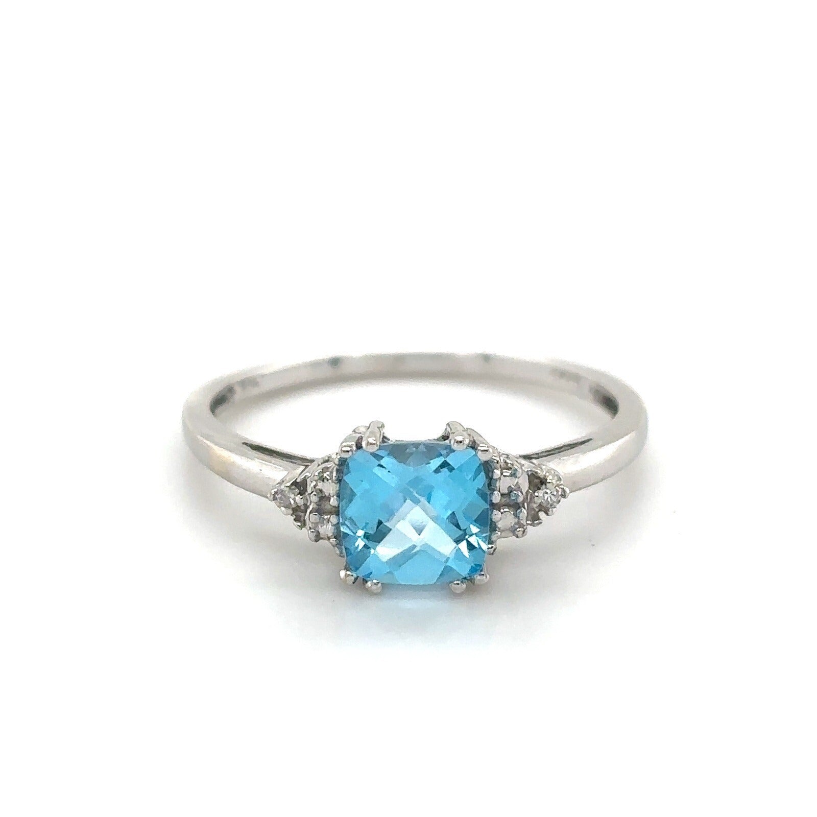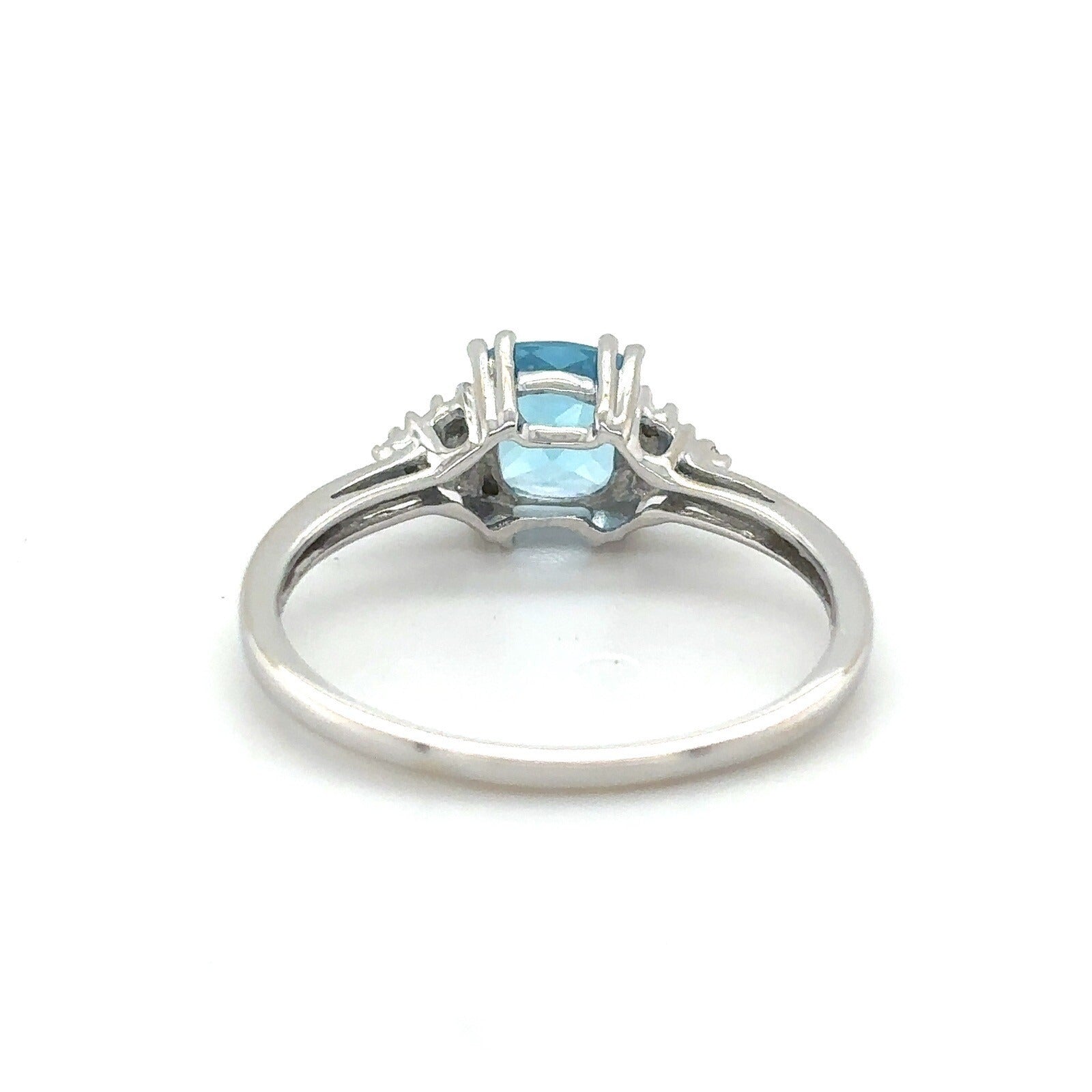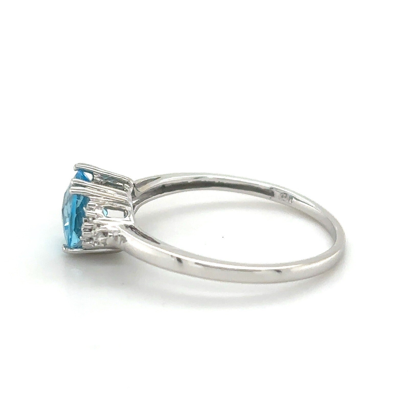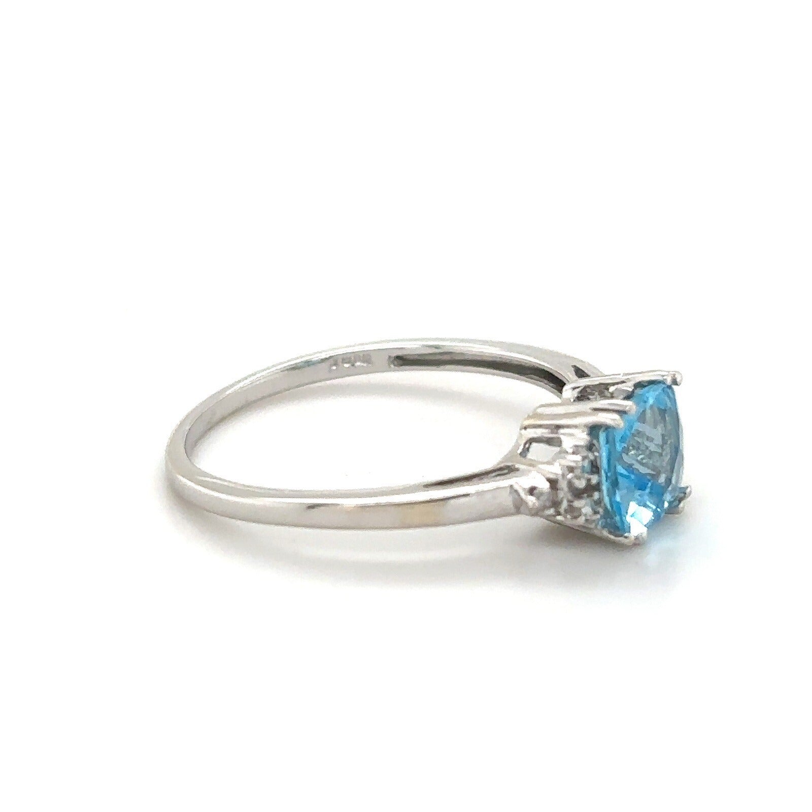 Swiss Blue Topaz and Diamond 14K White Gold Ring 1.7g Size 7