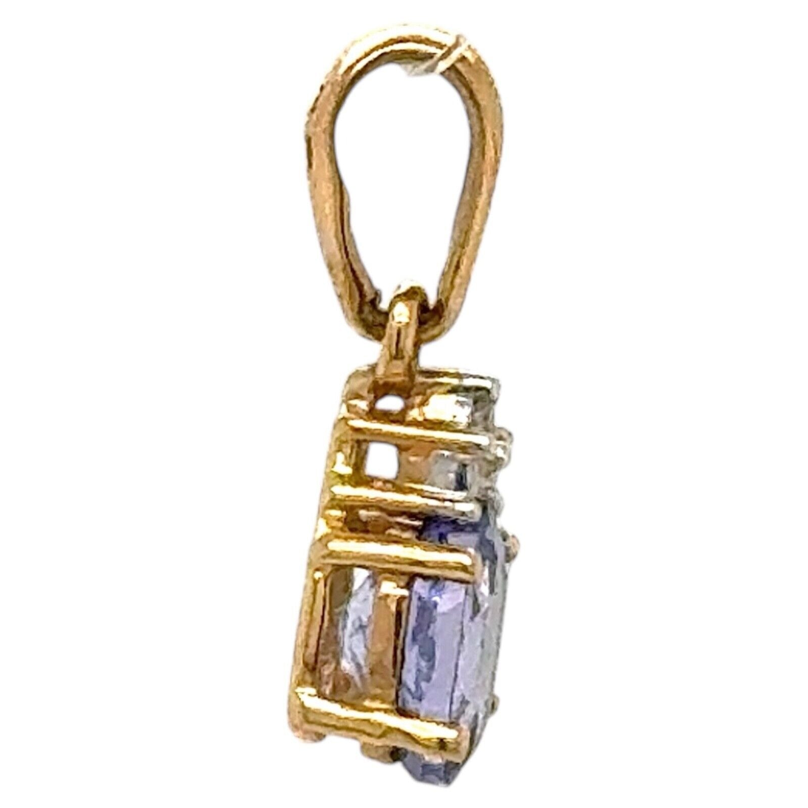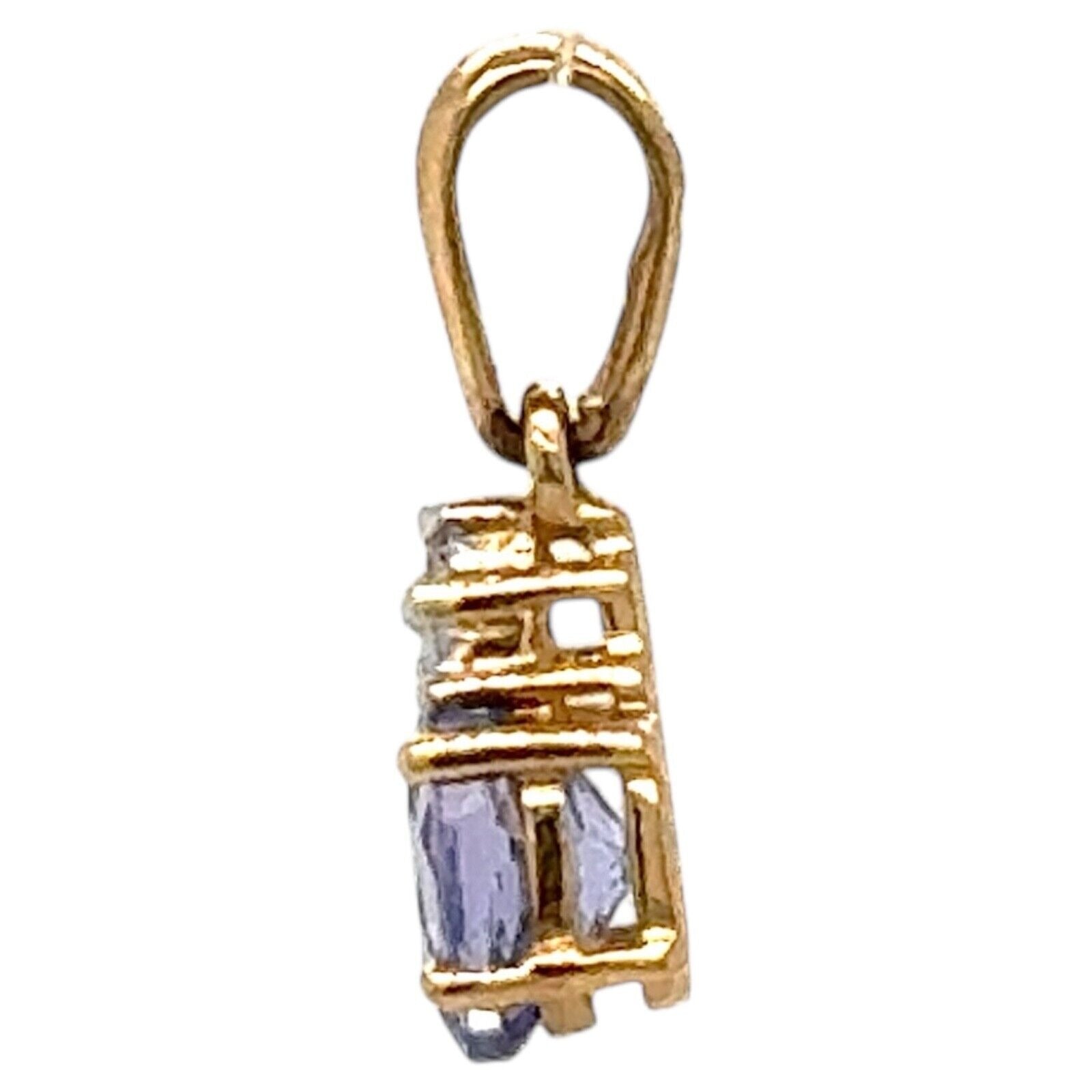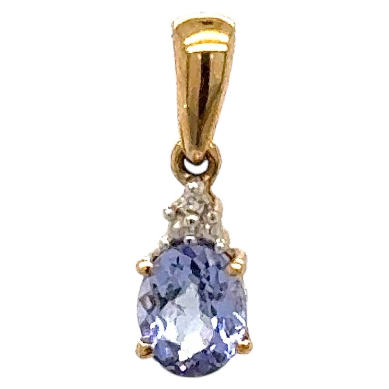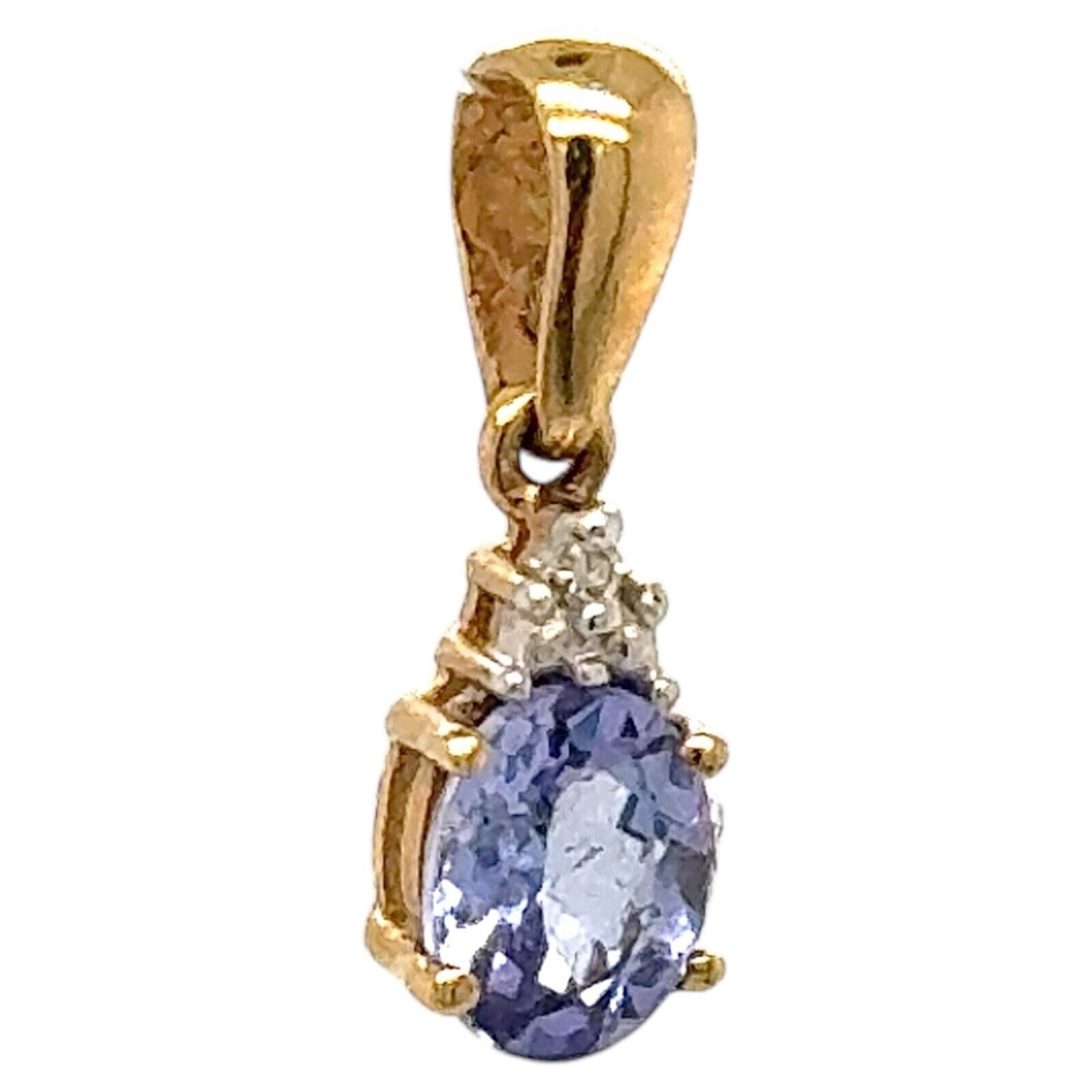 Tanzanite Solitaire with Diamond Accent 10k Yellow Gold Pendant 0.4g