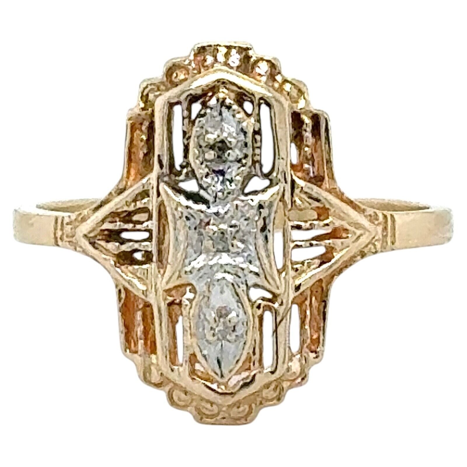 Vintage 10k Yellow Gold with Diamond Accent Size 7 Ring 2.4g