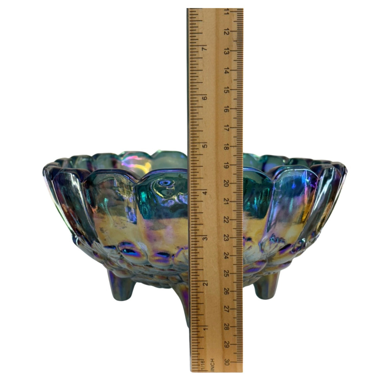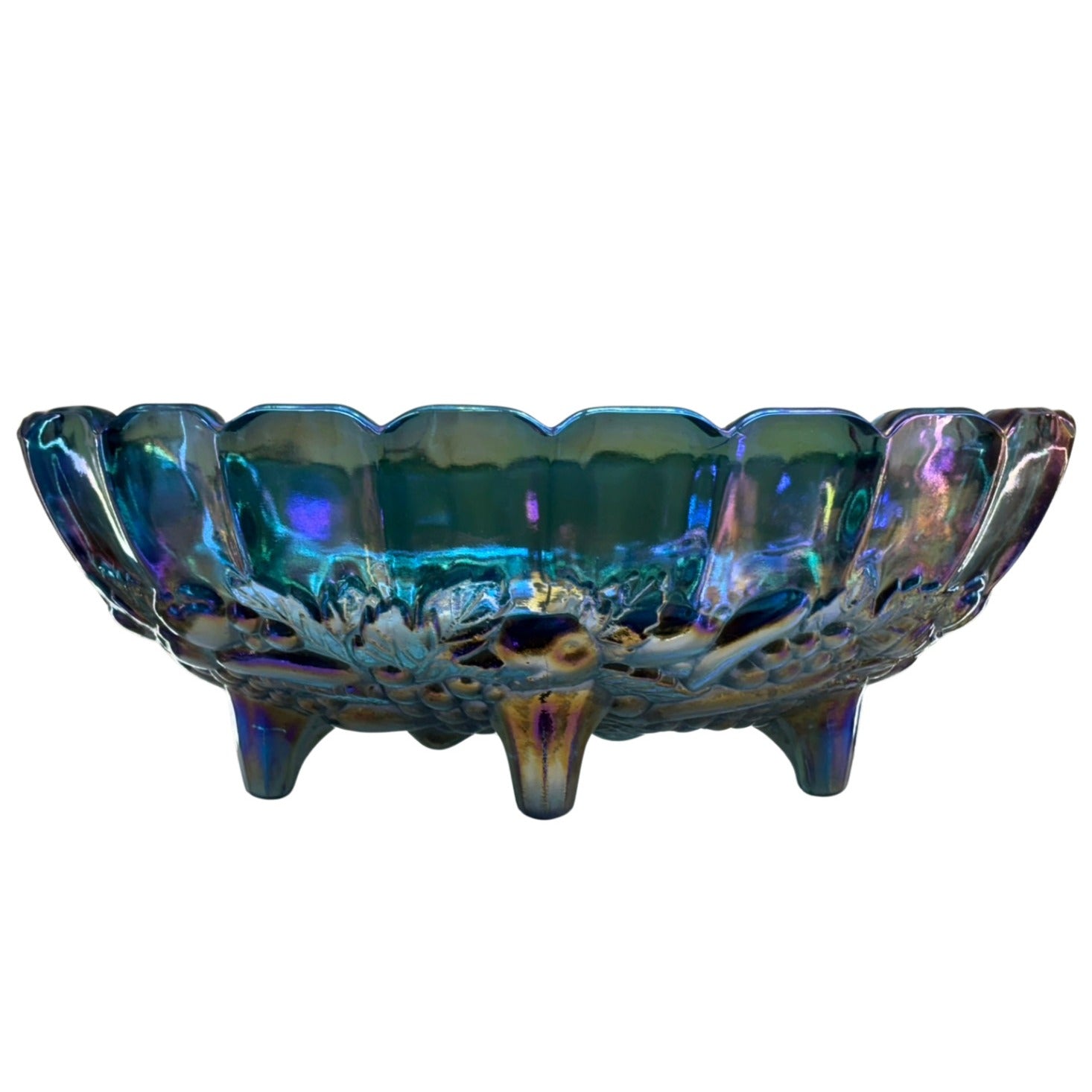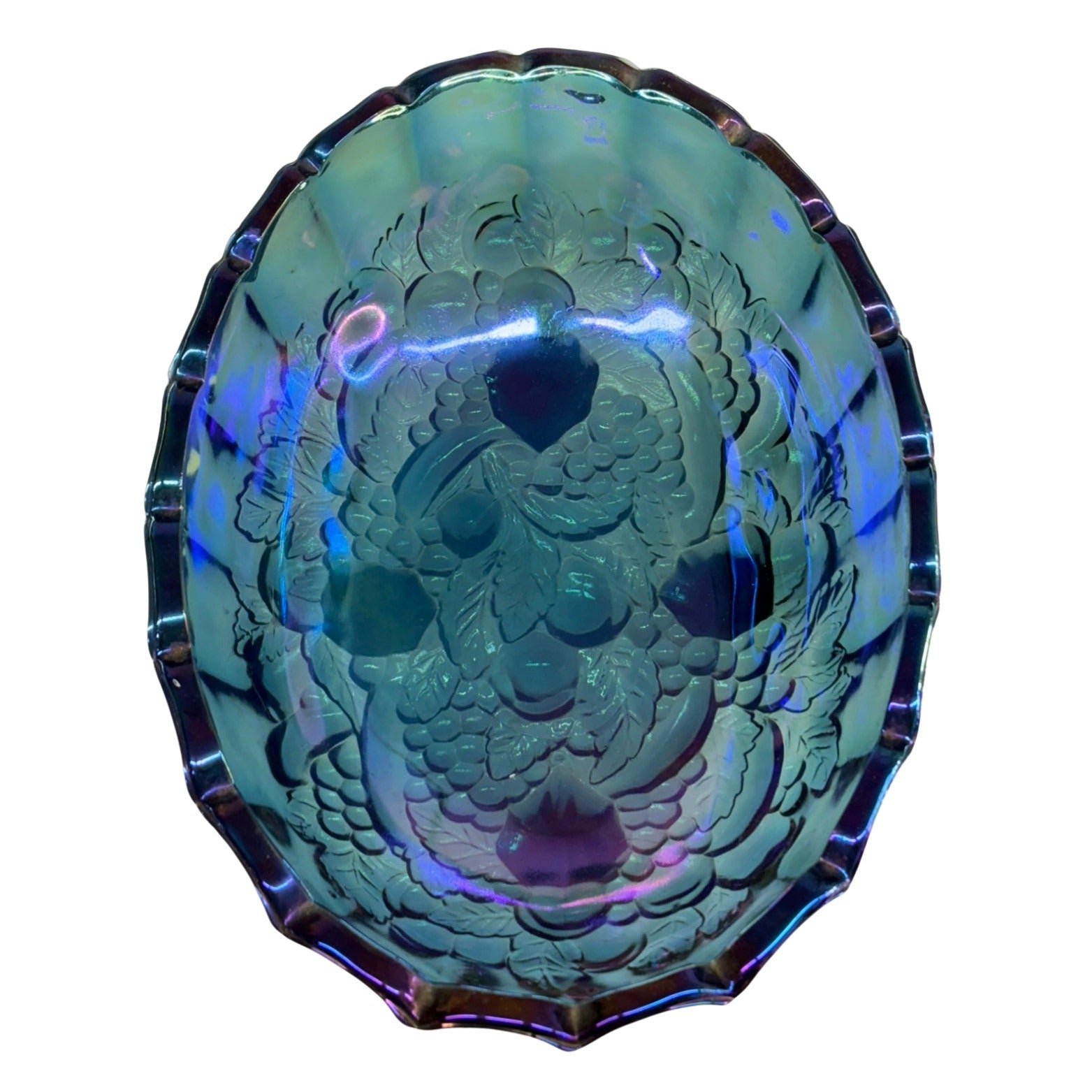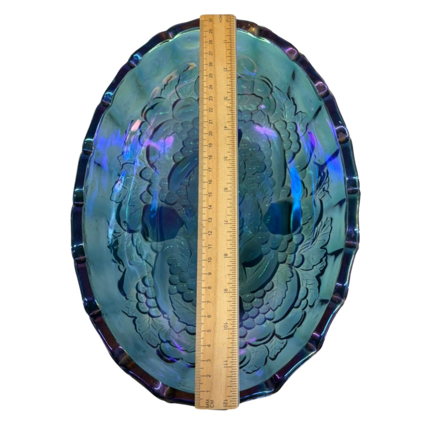 Vintage 12 inch Indiana Glass Harvest Grape Blue Carnival Glass Oval Bowl