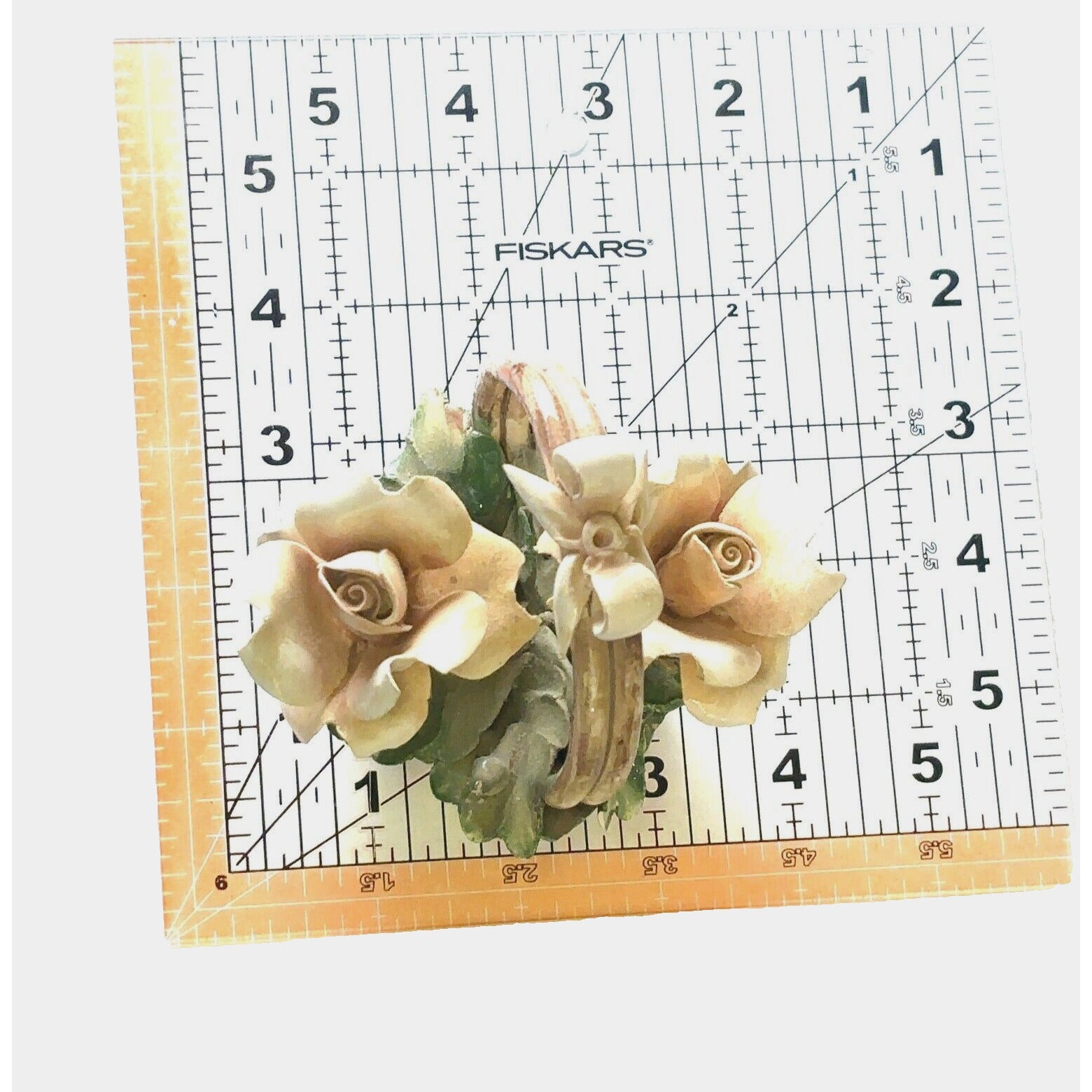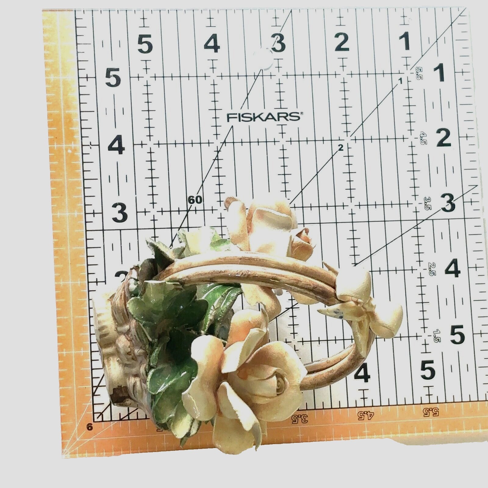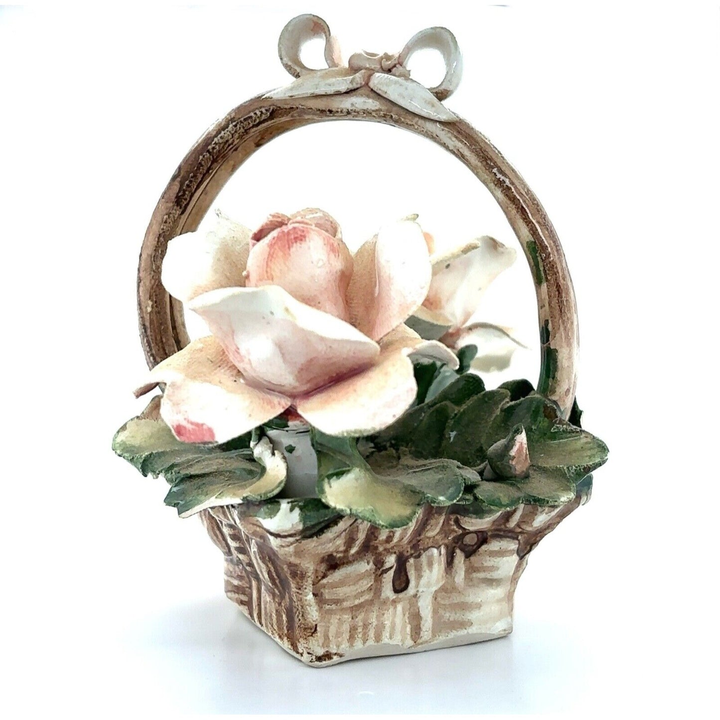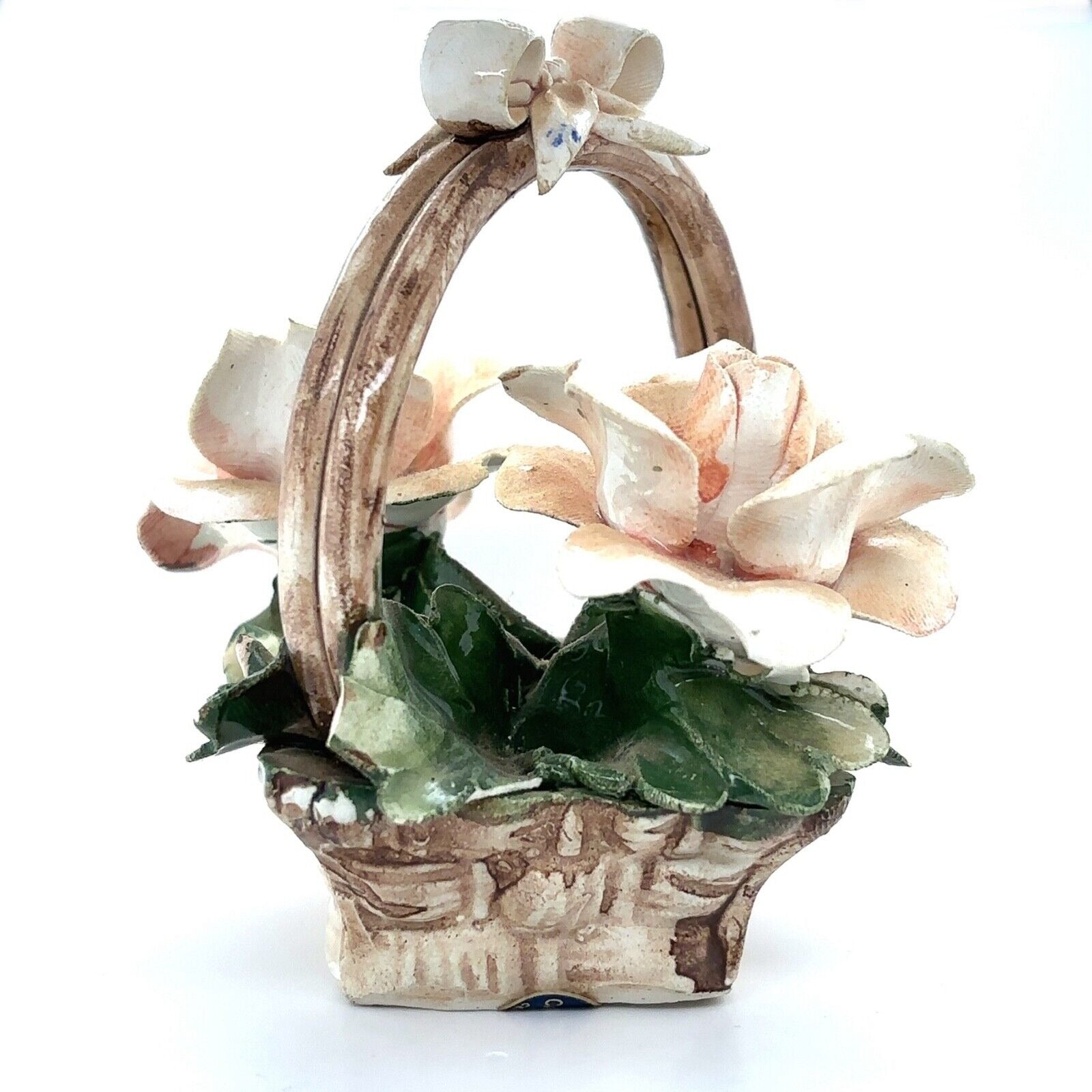 Vintage Capodimonte White Roses Flower Basket Made in Italy 5" Tall