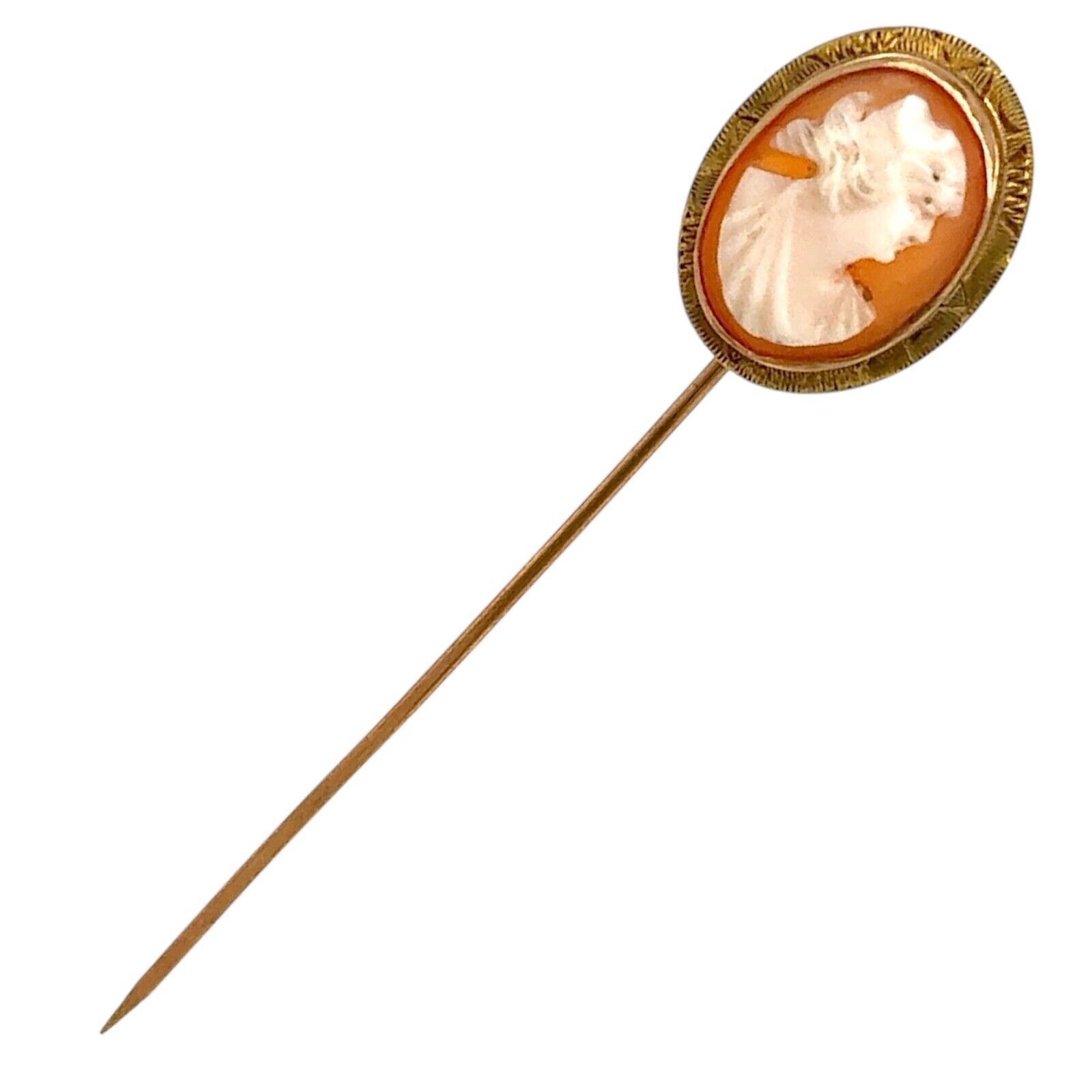 Vintage Oval Cameo 14k Yellow Gold Stick Pin 1.7g